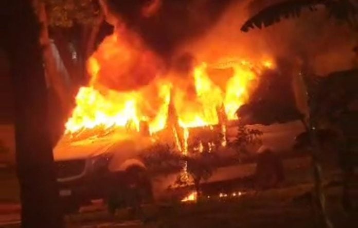 La víctima, una mujer de 44 años, denunció que a la 1:30 de la madrugada encontró su Renault Sandero blanco envuelto en llamas frente a su vivienda en la avenida Rademacher. El incendio provocó daños de consideración en la parte delantera del vehículo, especialmente en el motor.