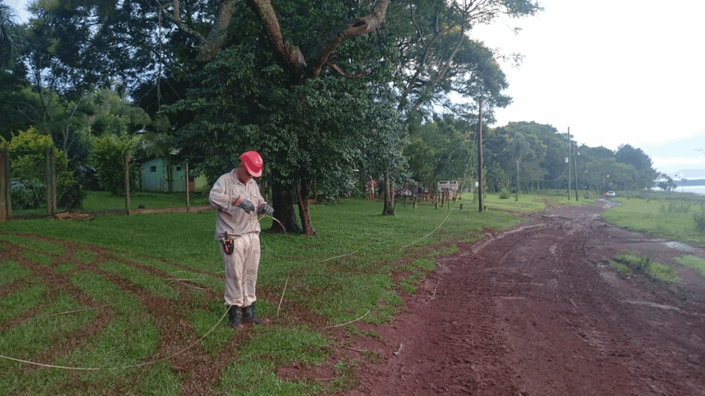Finalmente, las cuadrillas trabajaron en la localidad de Wanda, específicamente a la altura del kilómetro 13. En dicho sector, se ejecutaron labores sobre líneas de media y baja tensión, permitiendo que la comunidad mantuviera la continuidad del servicio eléctrico sin interrupciones mayores.