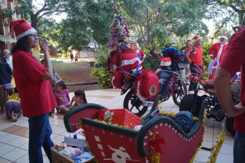 La actividad reunió motos de todas las cilindradas, trajes rojos, barbas postizas, cascos adaptados al calor —la temperatura alcanzó 36 grados— y un clima de entusiasmo visible entre los niños. Según Melgarejo, los pequeños “ya conocen la llegada de los papanoeles y manifiestan una expectativa enorme porque se combinan dos cosas que ellos adoran: los trajes navideños y las motos”.