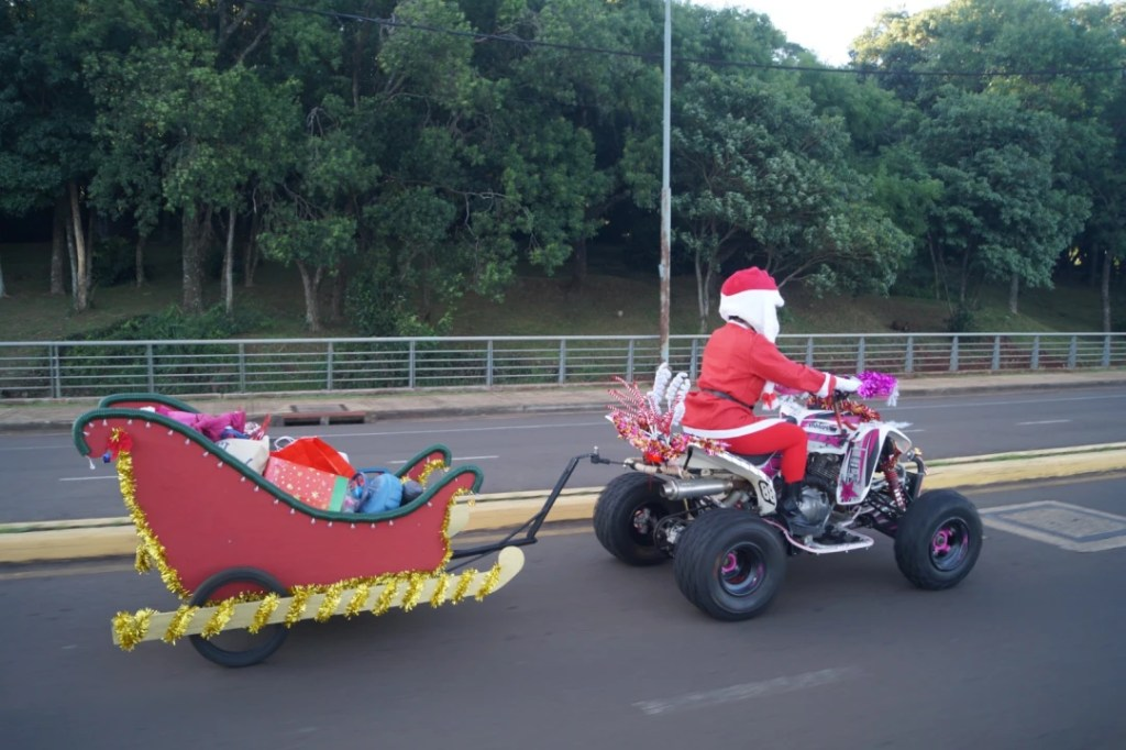 La Papanoelada Motera más grande de la Argentina volvió a tomar las calles de Posadas y alcanzó su novena edición con una convocatoria superior a los 250 participantes disfrazados de Papá Noel. La caravana avanzó por distintos puntos de la ciudad hasta arribar al Hospital de Pediatría ‘Fernando Barreyro’, donde distribuyó juguetes y afecto a los niños internados.
